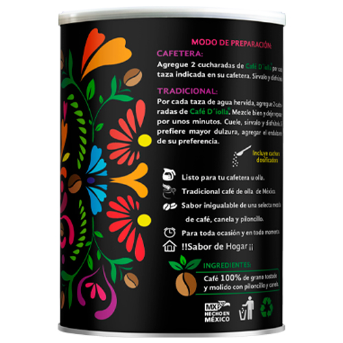 - Sabor inigualable de una selecta mezcla de café, canela y piloncillo.