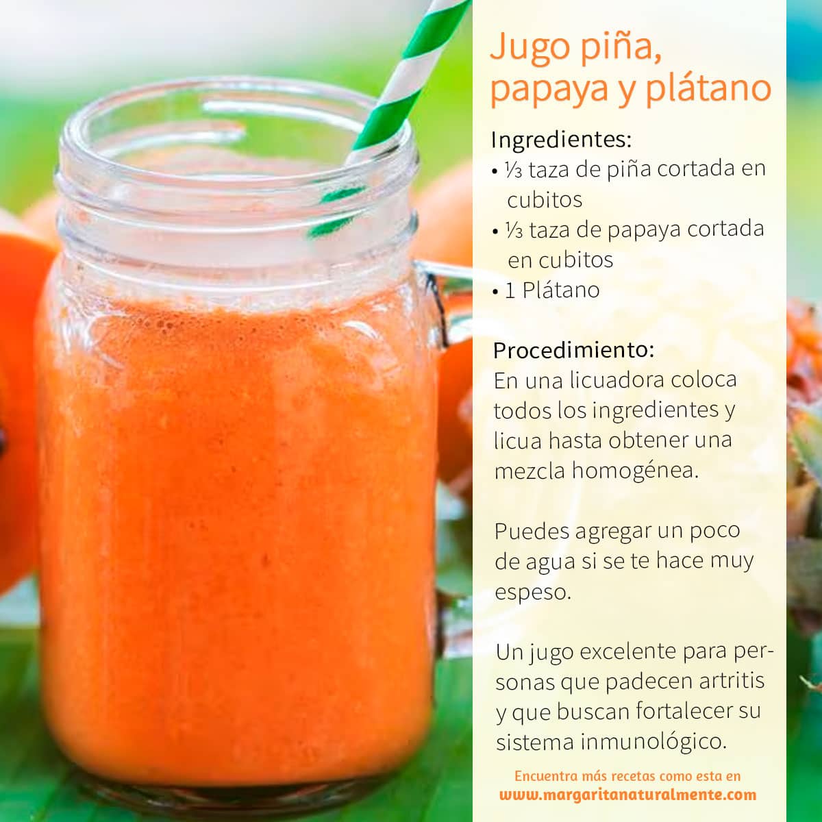 Jugo piña, papaya y plátano